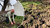 Vildsvinen vänder upp och ner på församlingshemmets gräsmatta