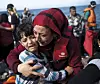 Hon håller hårt om sina barn. Ser på oss med vädjande ögon. Hjälp oss! Hon kommer från Syrien.