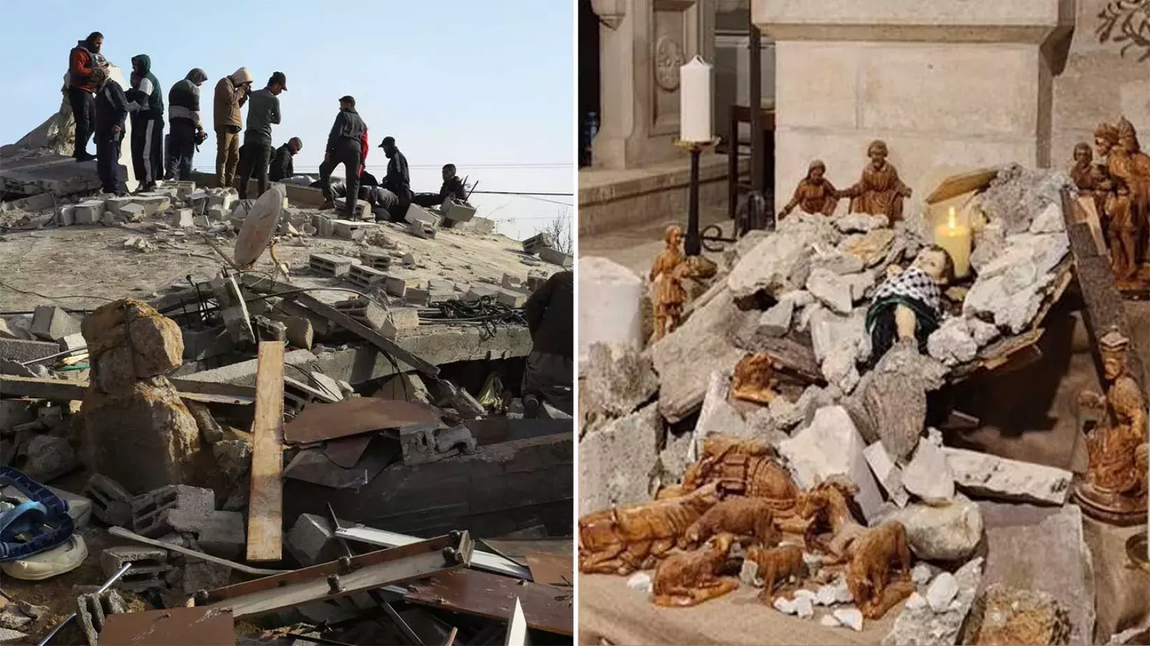 Christmas Lutheran Church i Betlehem byggde kring jul en ”rasmasskrubba” tillägnat barnen i Gaza. Foto: TT och Munther Isaac