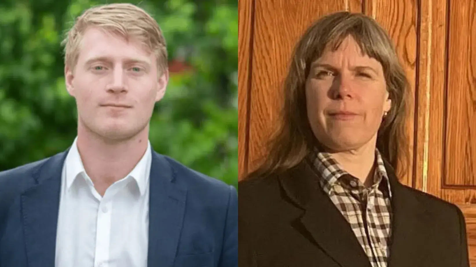 Amanda Carlshamre och Jesper Eneroth möts i en debatt. Foto: Johannes Frandsen och Marcus Gustafsson