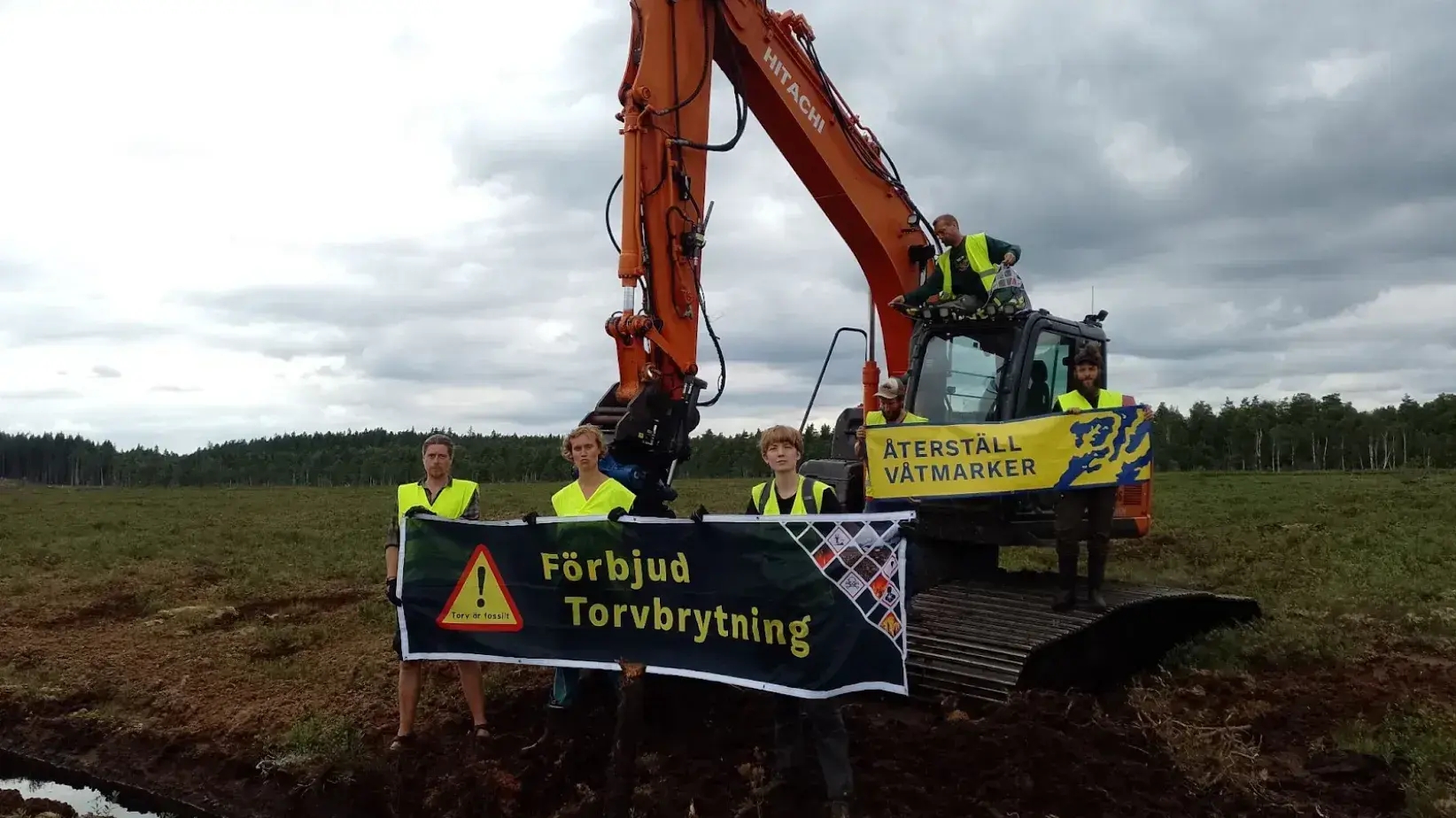 Debattörerna skriver om klimatfrågan utgående från en gudstjänst i november förra året i Västgötska Grimsås. På bilden Återställ våtmarker under en aktion på Grimsås mosse 2024. Foto: Återställ våtmarker