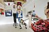 Församlingspedagog Jenny Edling fotar sina konfirmander på det interaktiva Paradoxmuseet i Stockholm.