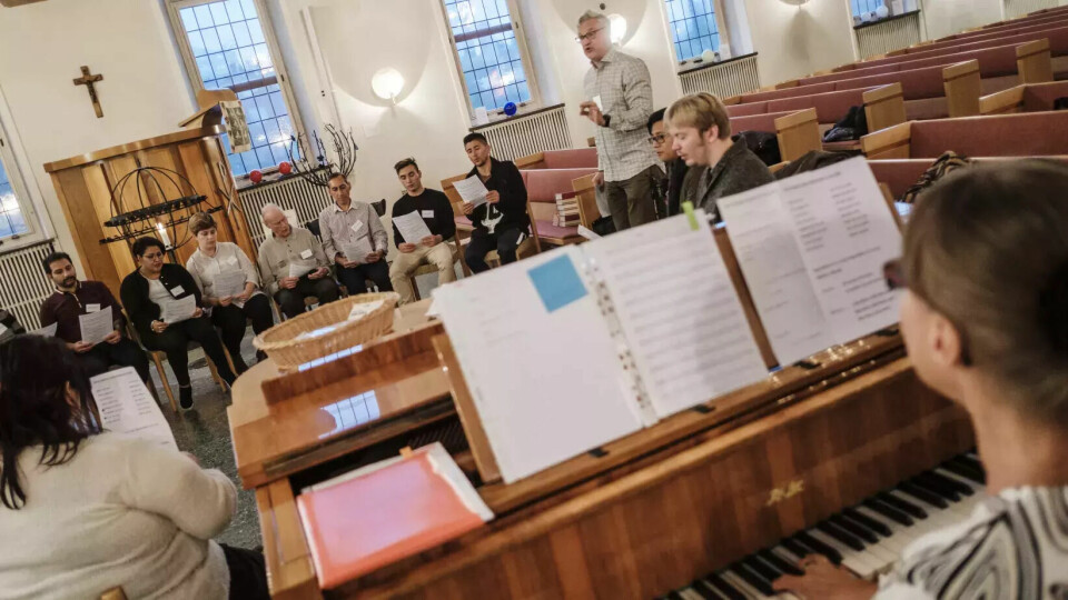 När sången kommit i gång är han långt ifrån ensam om att le. Även om några får kämpa med att få till tydliga svenska s och r, tycks de alla njuta av att höra hur deras röster blir till vacker kanon och oväntade stämmor. På repertoaren står både klassiska sånger och gospelsväng, med hyfsat enkla texter för språkförståelsens skull.