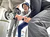 Vidar Lindblom tar i för kung och fosterland när seglet ska upp. Det är tungt, och allt på Elida görs med handkraft.