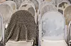 De många stolarna, som ersatte kyrkbänkarna, är klädda med pergament av garvad kohud. Anders Bergström har lagt ut olika tyger över några stolar för att illustrera att varje stol har sitt individuella mönster, ingen är likadan, alla är individer som skapar en mångfald.