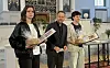 Filippa Samuelsson och Edvin Engdahl får årets ungdomsledarstipendium i Stockholms stift. I mitten domprost Jonas Eek.