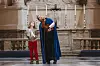Förutom Jesusbarnet är en av huvudkaraktärerna ett barn. Annica Sundkvist, i blå mantel, tillsammans med Zakarias Preston.