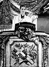Kyrkoadjunkt Caroline Krook predikar i predikstolen i S:a Clara kyrka vid gudstjänsten inför riksmötets öppnande 1980.