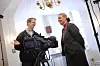 Johannes Söderberg spelar in helgsmålsbön med biskop Caroline Krook.