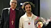 Mottagaren av Svenska kyrkans filmpris 2020, Martin von Krogh (th), tillsammans med prisutdelaren, biskop emeritus Per Eckerdal.
