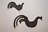 De sitter strax innanför vapenhuset i Silbodals kyrka, på en vit vägg intill sakristian. I sällskap med två brädmålade änglar från den gamla kapellkyrkan, belysta av en 250-årig ljuskrona i trä och inramad av två pelare i marmor. Hönan överst och tuppen strax under.