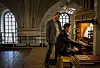 – Jag går runt hela kyrkan och tittar och jag brukar hosta på en massa olika ställen för att höra hur akustiken är. Efter det vet jag mer eller mindre vad jag kan göra. Sen går jag upp till instrumentet och kontrollerar mekaniken och storleken samt lyssnar på akustiken här uppifrån läktaren. Ju större instrument desto större skillnader.