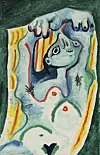 – Det finns flera bilder där Picasso bearbetar misslyckandet som tema och bjuder på ett självförlöjligande. Under de sista åren i livet är han i ett introspektivt läge, han prövar grejer han inte haft möjlighet att pröva tidigare. Han bygger in sig själv i verken. Ibland som en liten gubbe, ibland som en bebisgestalt. Ibland viker han liksom ihop över sig själv, helt självförminskade, säger curatorn Jo Widoff.