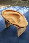 Margon Lindbergs lena terrakottaskulptur, av bränd men oglaserad lera, har ett budskap. Vi behöver alla öppna öronen för att tänka efter innan vi börjar tala. I vårt tidevarv med polarisering och fake news tar vi även Ordspråksboken till hjälp: Klokhet och kunskap måste prägla det vi säger.