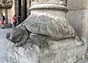 Under en av pelarna vid Sagrada Famílias södra portal har Gaudí symboliskt placerat en sköldpadda. Tanken är att påminna om att kyrkan behöver bäras med styrka och tålamod. Den skulle också kunna säga oss att kyrkan först och främst är en tjänare och inte en herre, med de resurser vi har, oavsett om de mänskligt sett är små eller stora.