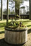 ”Kantarellen” är en rotvälta som satts upp och ner och som fyllts av växter året runt. På vintern sitter en ljusslinga högt däruppe, som en gnistrande stjärnhimmel när mörkret faller tidigt. Insektshotell och fågelholkar bidrar till den biologiska mångfalden och förhoppningsvis kommer ett bisamhälle att flytta hit i sommar. Bevattningen är ordnad med en slang från Djulösjön och ett pumphus.