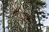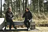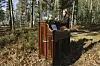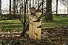 Vi tittar på ekorrens restaurang uppe i ett kapat träd som står kvar trots att det gjort sitt, detaljer som döljs bland träden och några trärundlar invirade i en tamp. ”Omsorgen” kallas den enkla träskulpturen och ser ut som två människor som lutar sig mot varandra.