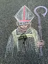 Biskop Åke Bonnier i Skara stift fick hjälp med att hitta sin parkeringsplats i Götene när han kom på visitation. Någon hade ritat ett porträtt av biskopen i en parkeringsruta.