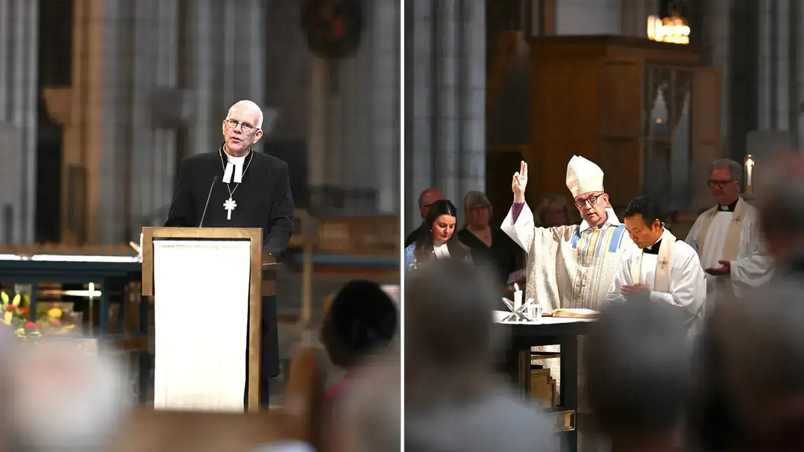 Ärkebiskop Martin Modéus höll ett hälsningsanförande under kyrkomötets öppnande. Fredrik Modéus ledde gudstjänsten. Foto: Magnus Aronson/Ikon