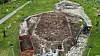 Drönarbild från utgrävningen. Här har arkeologerna förutom ben hittat en del mynt.