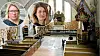 Bo-Göran Kristoffersson och Danne Pe Peterson.Små bilder: Rebecka Svensson, stiftsantikvarie och Susanna Barros,målerikonservator.