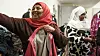 Noria Abdi hjälper Hälleforsborna att få sina kläder och gardiner uppsydda.