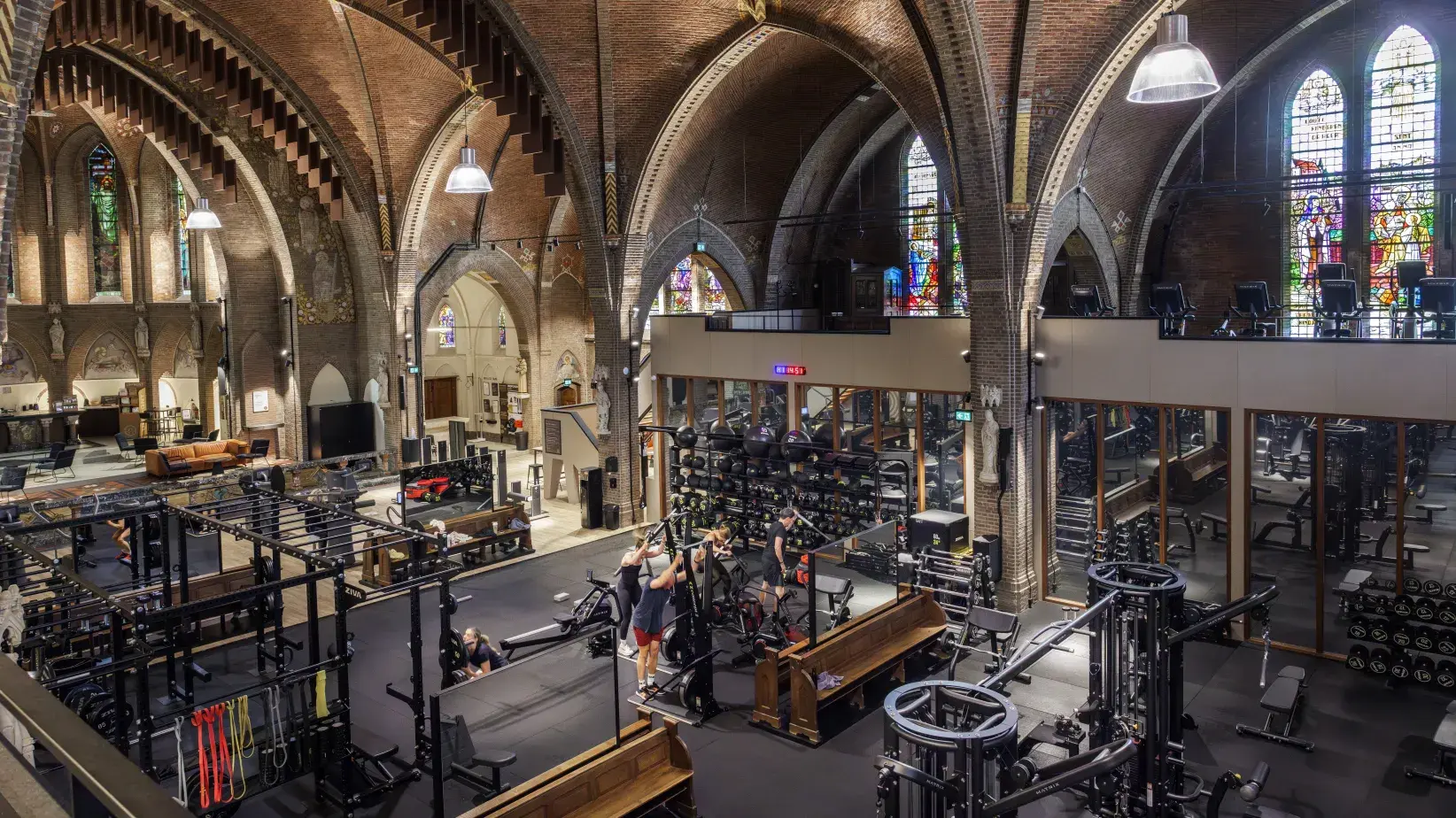 Omklädningsrum i sakristian. Isbad i dopgraven. Kaffeservering från altaret. Och en stor öppen yta som har fyllts med mjuka mattor och redskap. Commit health clubs gym i gamla St Gertrudiskerk i Utrecht är inte den enda av sitt slag, men onekligen en ovanlig upplevelse. Foto: Mikael M Johansson