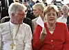 EKD:s rådsordförande Heinrich Bedford-Strohm och förbundskansler Angela Merkel under en mottagning i Berin i juni i fjol.