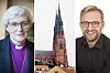 Ärkebiskop Antje Jackelén och föreståndaren för Pingst, Daniel Alm, dialogpredikar under en gudstjänst i reformationens tecken i Uppsala domkyrka.