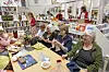 Deltagarna i stickkaféet träffas mellan böcker och skivor varje torsdag.