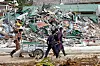 Under natten hade dessa sökt skydd i bergen eller på hotelltak i rädsla för nya ”jättevågor”. De flesta var i behov av stor hjälp. Många kom i badkläder, några i badlakan, flip-flop på en av fötterna, sand i håret, öppna sår… förvirrade, desperata. Kaoset växte.