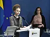Claudio Bresciani/TT Kultur- och demokratiminister Amanda Lind under en pressträff om Sveriges begravningsverksamhet med anledning av coronaviruset. Till höger Anna Starbrink, hälso- och sjukvårdsregionråd (L) i Region Stockholm.