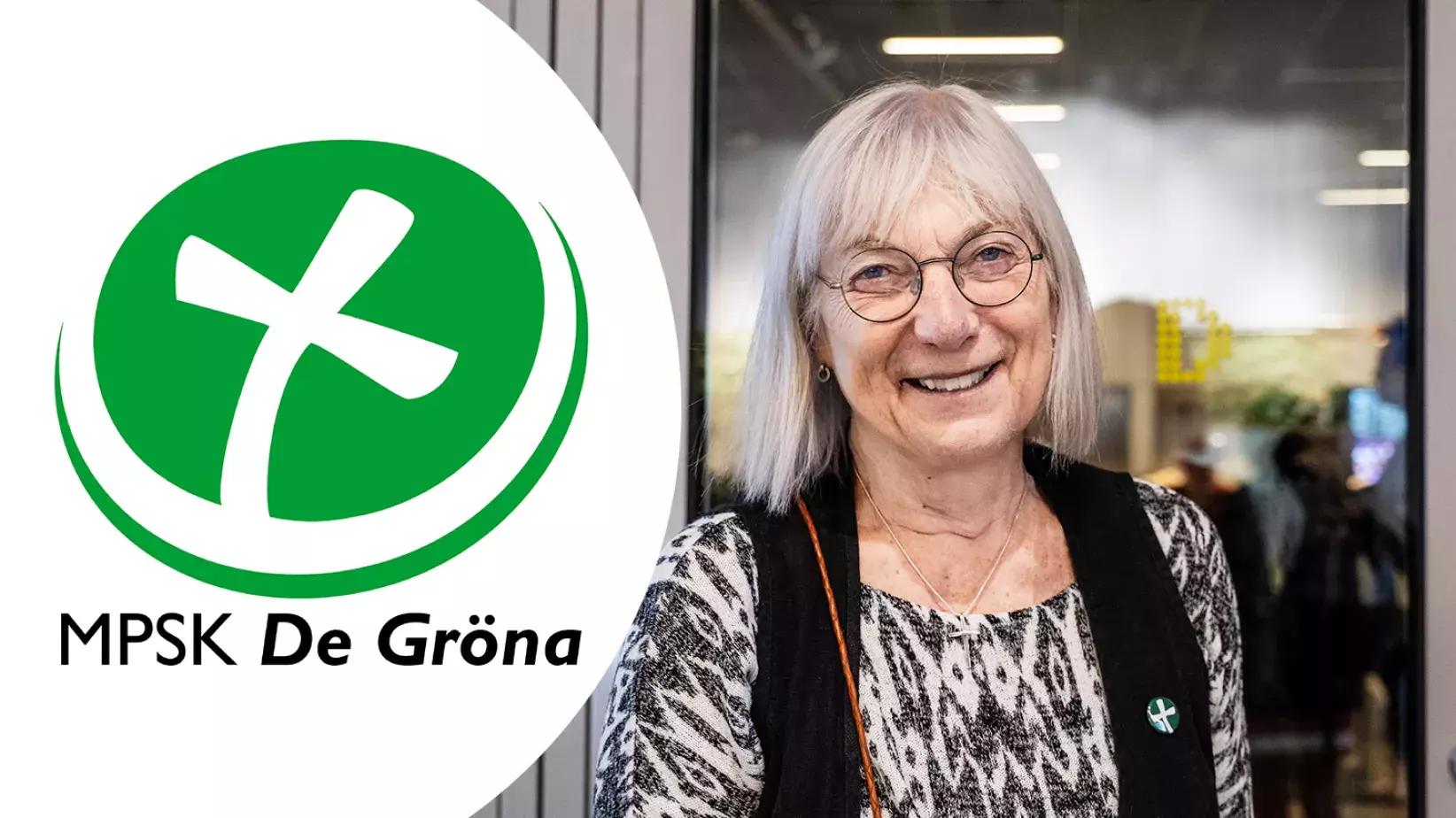 För några år sedan bytte MPSK ut logotypen med Miljöpartiets maskros till en ny, med ett kors som omsluter världen. Den nya logotypen kommer att bli kvar efter namnbytet, säger Marja Sandin-Wester, MPSK:s gruppledare i kyrkomötet. Foto: Marcus Gustafsson