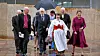 Johan Dalman, biskop i Strängnäs stift, Levi Bergström, kyrkomötets förste vice ordförande, Karin Perers, kyrkomötets ordförande, ärkebiskop Martin Modéus och kronprinsessan Victoria på väg in i Uppsala domkyrka.