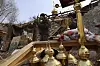 En präst räddar en ikonbild ur rasmassorna vid en ortodox kyrka i Ukraina. Svenska regeringen har inrättat ett råd för skydd av kulturarv.