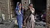 Två kristna kvinnor betraktar resterna av sina hem i det kristna kvarteret i Faisalabad.