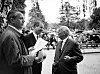 Partiordförande Birger Ekstedt, rådman Harald Ljungström och pastor Lewi Pethrus i samspråk under Kristen demokratisk samlings första valkampanj 1964. Harald Ljungström hade varit medlem i ett nazistparti under kriget.