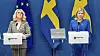 Socialminister Lena Hallengren och statsminister Magdalena Andersson under pressträffen i Rosenbad. Alla coronarestriktioner slopas från och med den 9 februari.