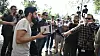 Den person som hade fått tillstånd av polisen till en allmän sammankomst för att bränna en tora och en bibel utanför Israels ambassad valde att inte bränna böckerna utan att med en koran i handen hålla en manifestation.
