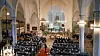 Kyrkan var full. Begravningsgäster hade uppmanats att komma i god tid. Utanför kyrkan samlades många för att följa begravningen på storskärm.