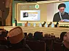 Doktor Ali Al-Amin, från det Muslimska äldrerådet, talar. På scenen finns bland andra Olav Fykse Tveit, generalsekreterare för Kyrkornas världsråd.