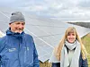 Gert Adolfson, chef för egendomsförvaltningen i Skara stift, och Malin Fahlesson, projektkoordinator, på ett studiebesök i höstas vid HSB Solkraftspark utanför Strängnäs.