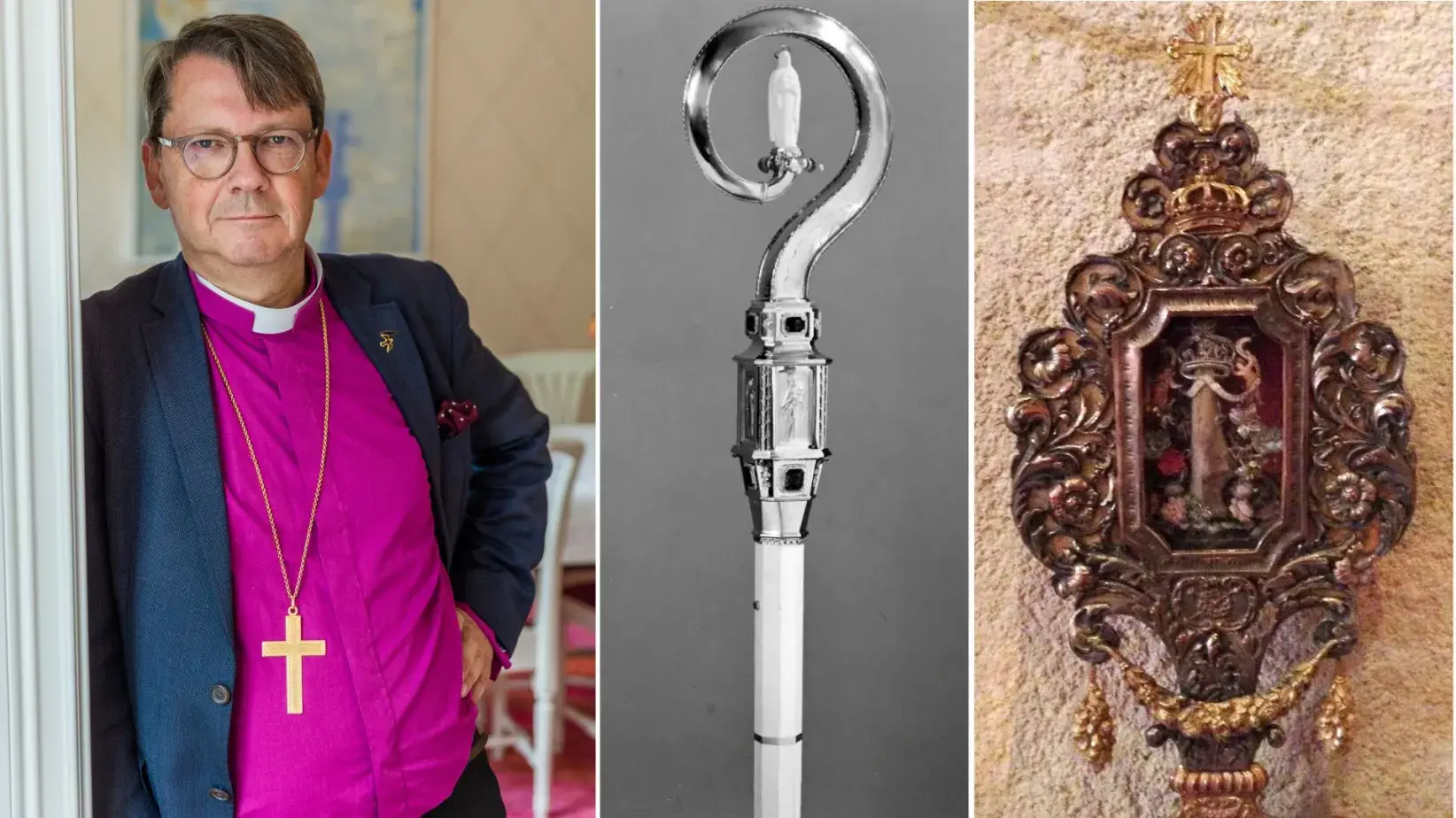 Biskop Johan Tyrberg hoppas att biskopskräklan som stals från Lunds domkyrka 2009 ska komma till rätta. En annan saknad kulturskatt är det relikskrin som stals från Sankta Eugenia kyrka i Stockholm 2014. Foto: Mikael M Johansson, Lunds stift och Sankta Eugenia