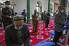 Uigurer och andra muslimer ber i en moské i Xinjiangregionen under ett besök som den kinesiska regeringen organiserade för utländska journalister i december 2021.