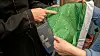 Det gröna tyget ska bli foder till Olof Bomans kaftan.