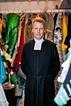 Olof Boman är uppväxt i EFS-miljön och har en mamma och morfar som också prästvigdes. Här ses Olof Boman i Anna Kjellsdotters ateljé där Olofs kaftan sys.