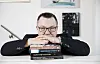 Detta är bilden som borde valts från början! Bengt Kristensson Uggla står i sitt belamrade bibliotek. I handen har han den nyutkomna engelska översättningen av sin bok om Gustaf Wingren. Till skillnad från den svenska versionens monokroma omslag pryds den engelska av ett amatörfoto där den kände teologen tar ett sommardopp.