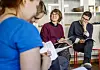 – Det går att hänvisa till andra skriftställen som belyser texten, men fokus ska ligga på den aktuella texten, instruerar Hassanain Govani oss som deltar i samtalet.